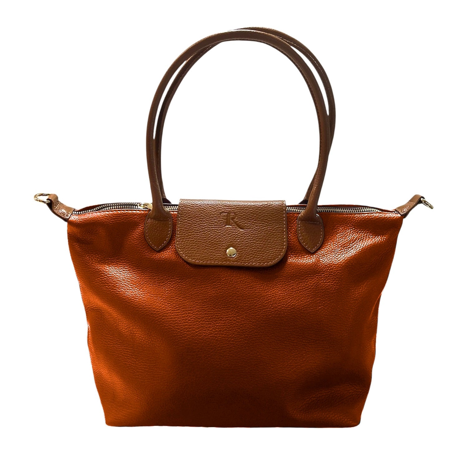 Eden, una shopper in vera pelle dollaro martellata con finiture e manico in pelle color cuoio e hardware dorati creano un contrasto raffinato che dona carattere e unicità.