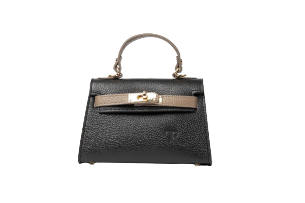 Borsa a mano in vera pelle dollaro Nera-Taupe.